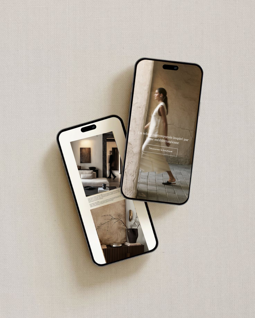 Inspirée par la symbolique délicate des formes organiques, la sérénité des espaces minimalistes et une vision plus consciente de la consommation, Maison Olympe propose un univers à la fois réconfortant, élégant et profondément aligné. Ce projet m’a permis d’explorer une identité subtile, poétique et soigneusement travaillée, où le calme et la sensibilité deviennent les véritables piliers de la marque.